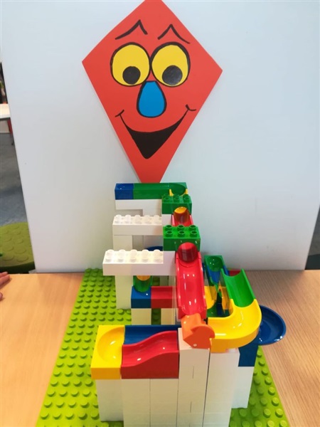 hoog mogelijke knikkerbaan of we proberen een combinatie te maken met een Duplo trein die voor ons de knikkers