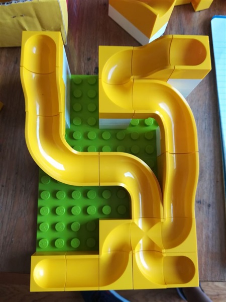 hoog mogelijke knikkerbaan of we proberen een combinatie te maken met een Duplo trein die voor ons de knikkers